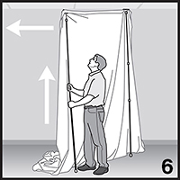 - Set up the barrier one pole at a time starting at the wall. Leave the plastic loose at the bottom and make sure the spring at the top of the pole is not compressed all the way.