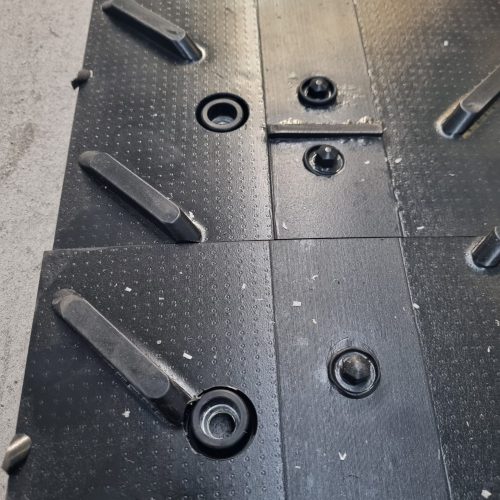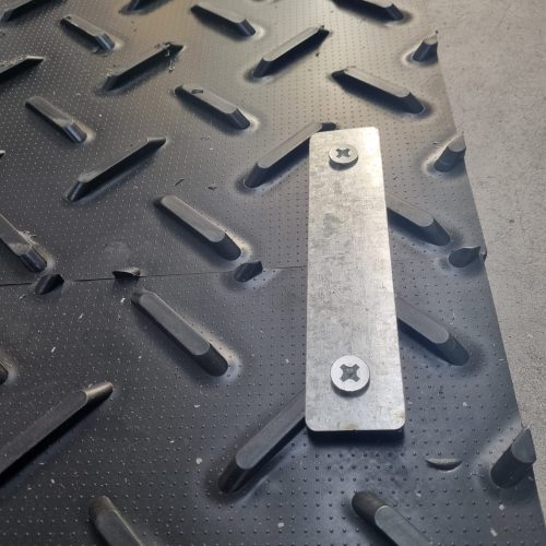 Revolutionary metal groundmat connectors that will keep groundmats in place even with heavy machinery usage.