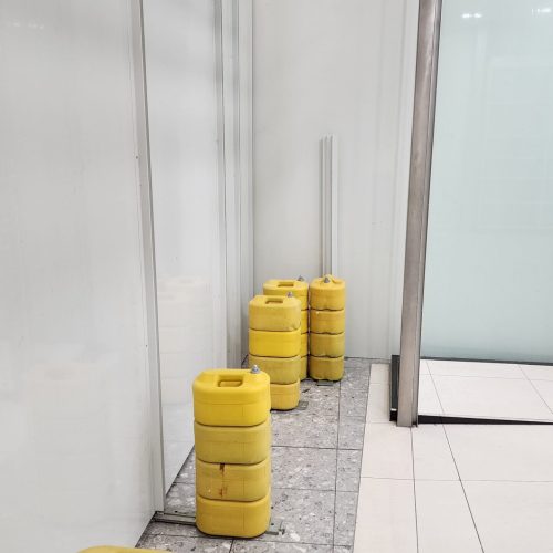 Our concrete filled base weights are strong, durable and designed specially to be used with our modular Hoardfast range. This base is suitable for both internal and external environments. It features a UV resistant, anti-aging plastic shell, that is filled with concrete. Its inbuilt handle and modular design make for easy stacking and easier mobility around the job site. Ideal for use in changing environments and areas with moderate exposure to the wind.